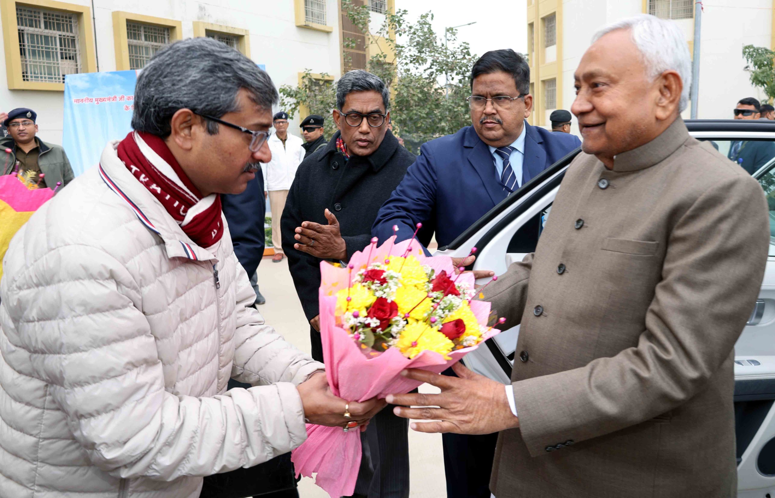 पटना/- मुख्यमंत्री नितीश कुमार ने आज मीठापुर में बिहार स्वास्थ्य विज्ञान विश्वविद्यालय एवं बिहार अभियंत्रण विश्वविद्यालय के निर्माणाधीन भवन का निरीक्षण किया। निरीक्षण के दौरान मुख्यमंत्री को विज्ञान, प्रावैधिकी एवं तकनीकी शिक्षा विभाग की सचिव डॉ० प्रतिमा एस० वर्मा ने बिहार अभियंत्रण विश्वविद्यालय तथा स्वास्थ्य विभाग के सचिव श्री लोकेश कुमार सिंह ने बिहार स्वास्थ्य विज्ञान विश्वविद्यालय के भवन के निर्माण कार्य से संबंधित जानकारी दी।