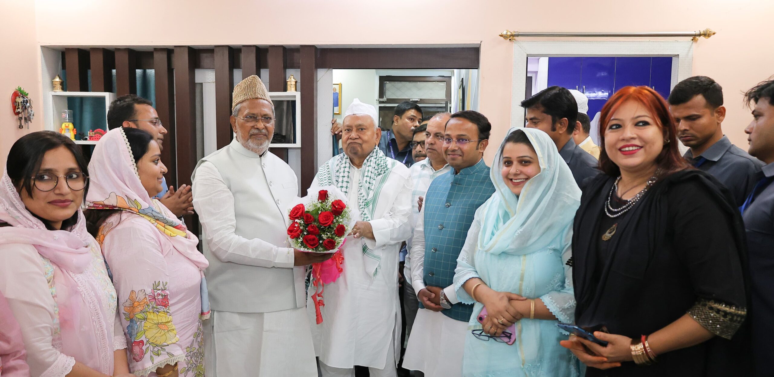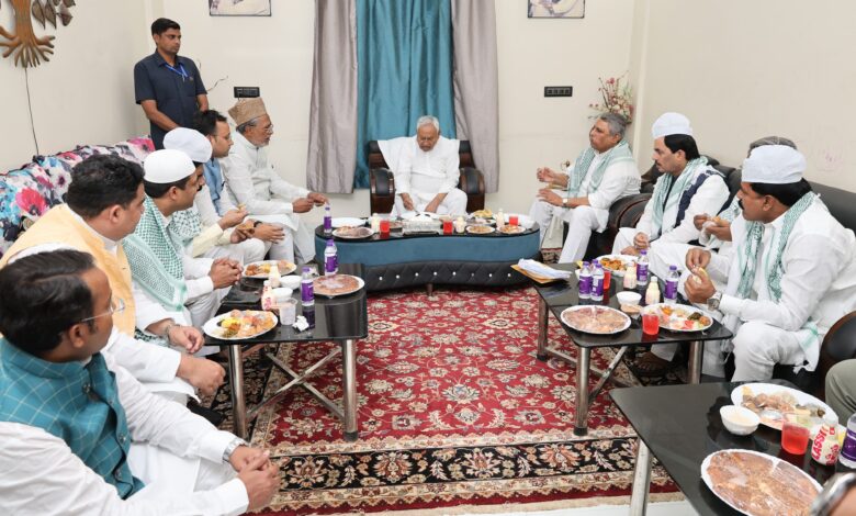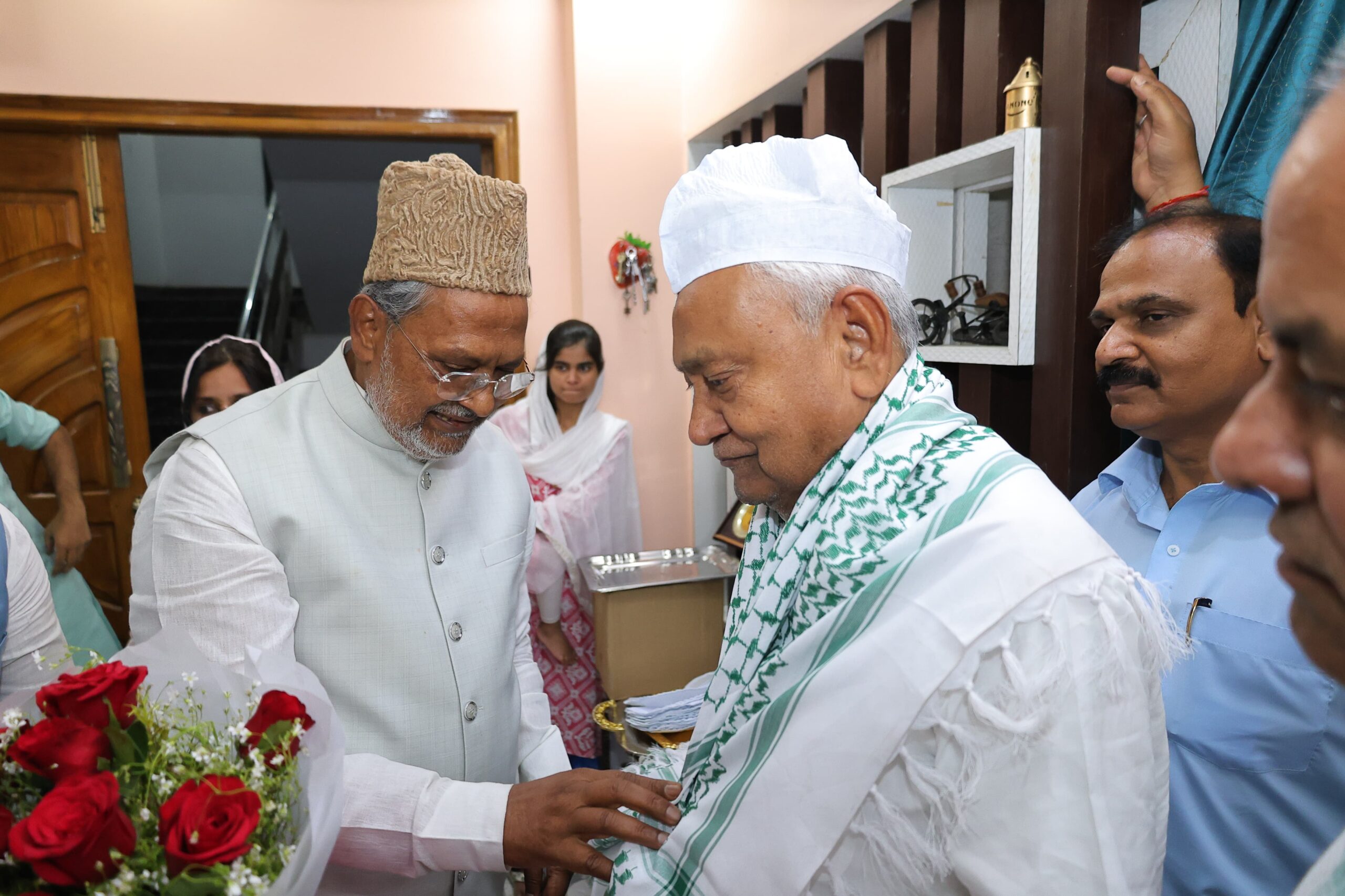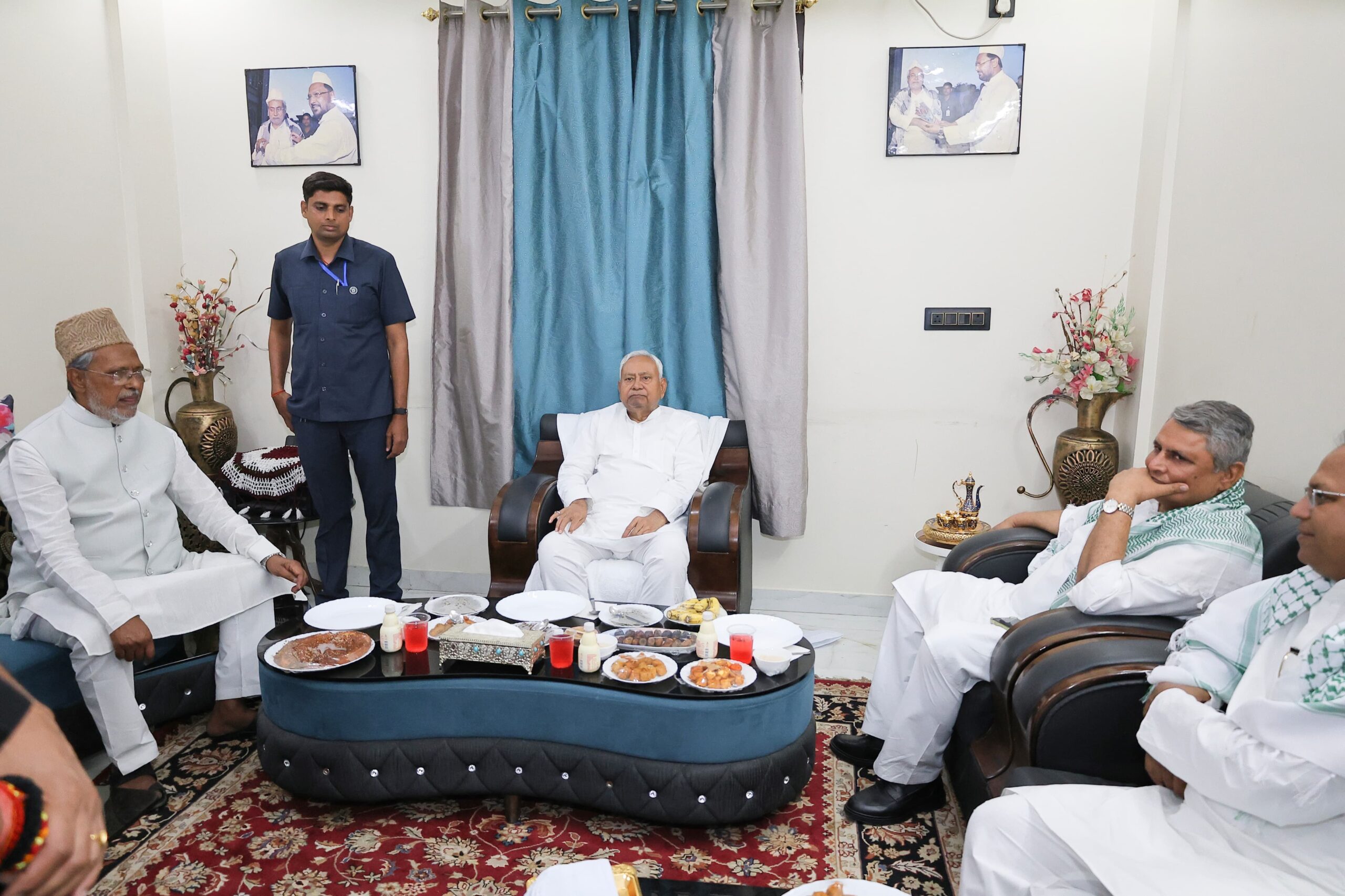 पटना, मुख्यमंत्री नीतीश कुमार आज अनीसाबाद स्थित अली नगर कॉलोनी में आयोजित दावत-ए-इफ्तार में शामिल हुए। दावत-ए-इफ्तार का आयोजन बिहार राज्य सुन्नी वक्फ बोर्ड के अध्यक्ष श्री इर्शादुल्लाह की ओर से किया गया।