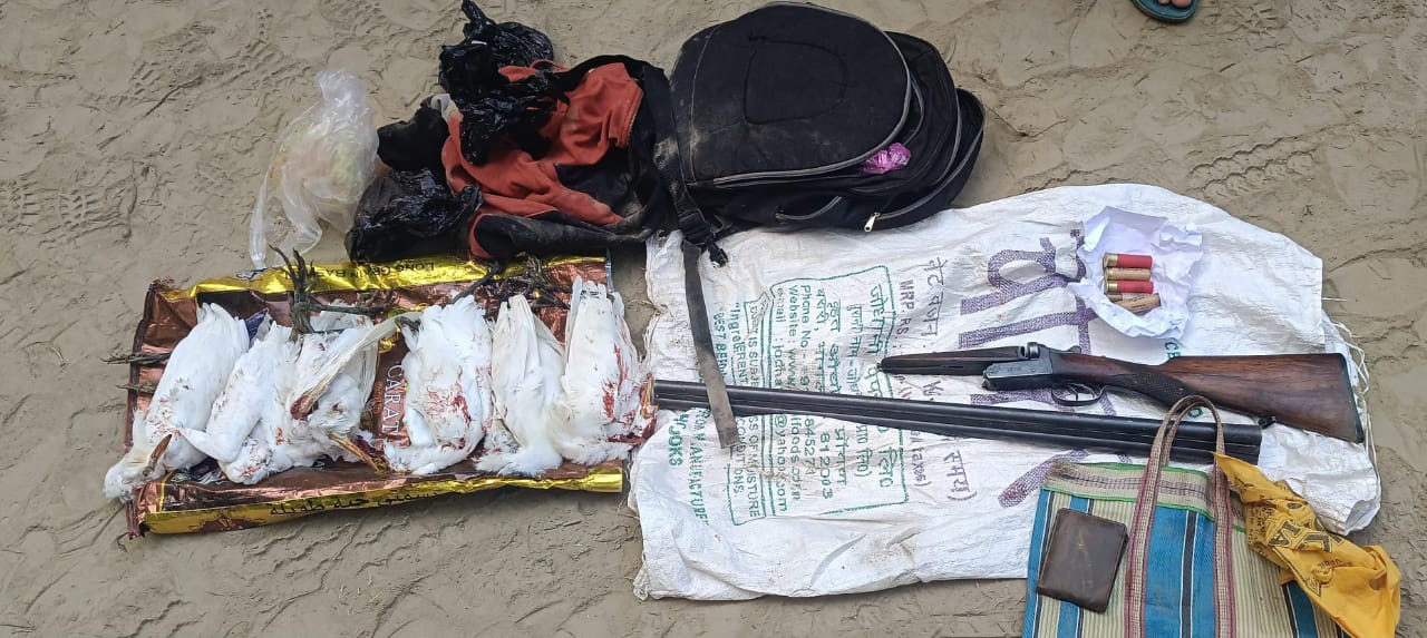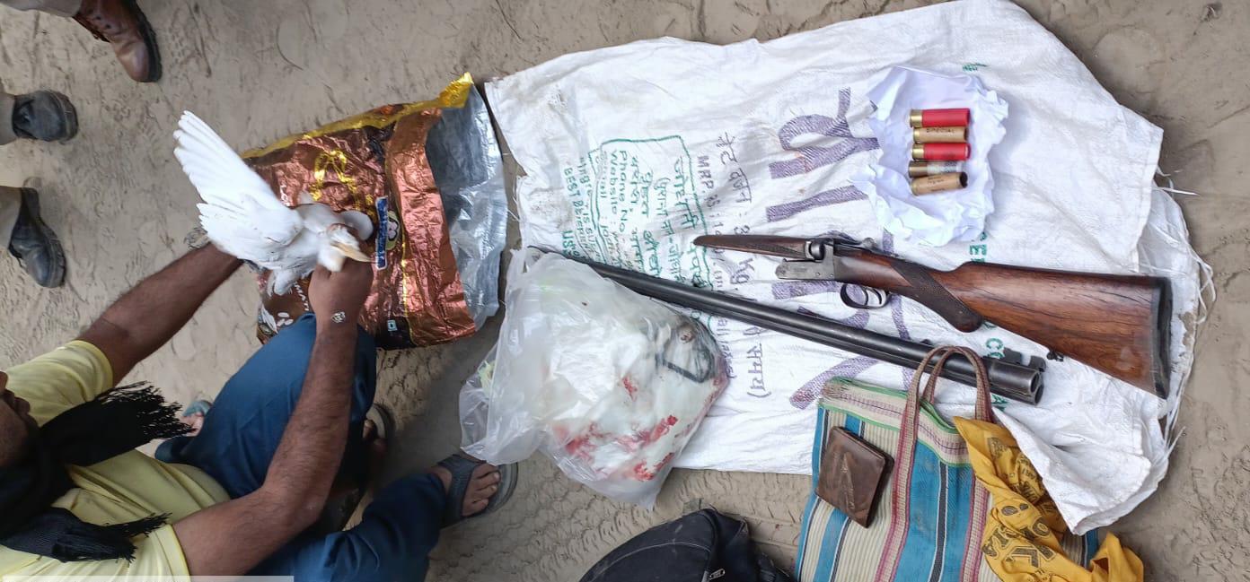 पहली बार देखिए बगुला पक्षी का शिकार और दो नाली राइफल, शिकारी गिरफ्तार।