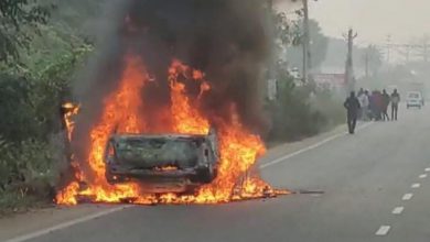 चलती कार में लगी आग, कार सवार सभी लोग कुदकर बचाई अपनी जान