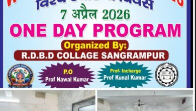 राजीव रंजन संग्रामपुर (मुंगेर)/- विश्व स्वास्थ्य दिवस के अवसर पर एन एस एस की आर.डी.बी.डी महाविद्यालय इकाई द्वारा महाविद्यालय परिसर…