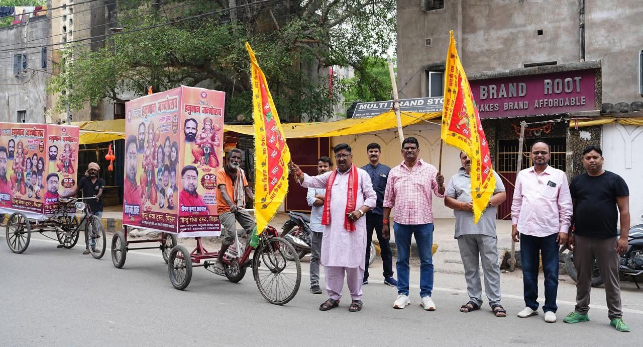 हिंदू सेवा ट्रस्ट बिहार द्वारा दो दिवसीय हनुमान जन्मोत्सव के भव्य आयोजन को लेकर तैयारियां जोरो से की जा रही है।इसी क्रम में ट्रस्ट द्वारा कार्यक्रम के प्रचार – प्रसार के लिए 4 रथों को हरी झंडी दिखाकर कंकड़बाग से रवाना किया गया। ट्रस्ट के अध्यक्ष एवं मुख्य संस्थापक दीपक कुमार अग्रवाल ने बताया कि यह रथ पूरे शहर में घूमकर लोगों को इस कार्यक्रम के बारे में अवगत कराएगा। हमारा उद्देश्य दक्षिण पटना को पूर्ण रूप से हनुमानमय बनाने की है। वहीं उन्होंने बताया कि कंकड़बाग टेम्पो स्टैंड चौराहा पर 1 अप्रैल को एक हजार से अधिक हनुमान भक्तों द्वारा सुंदरकांड का सामूहिक पाठ किया जाएगा। इस अवसर पर आचार्य डॉ. राधेश्याम शर्मा के द्वारा सुंदरकांड एवं भजन की प्रस्तुति की जाएगी। श्री अग्रवाल ने बताया कि हनुमान जन्मोत्सव के आयोजन को लेकर 20 तोरण द्वार, सैकड़ों होर्डिंग्स, पोस्टर्स लगाया जा रहा है। वहीं पूरे दक्षिण पटना को हनुमान जी के ध्वजा से सजाया जा रहा है। ट्रस्ट द्वारा एक कैलेंडर भी जारी किया गया है जिसे हनुमान जन्मोत्सव में आने वाले श्रद्धालुओं के बीच वितरण किया जाएगा।