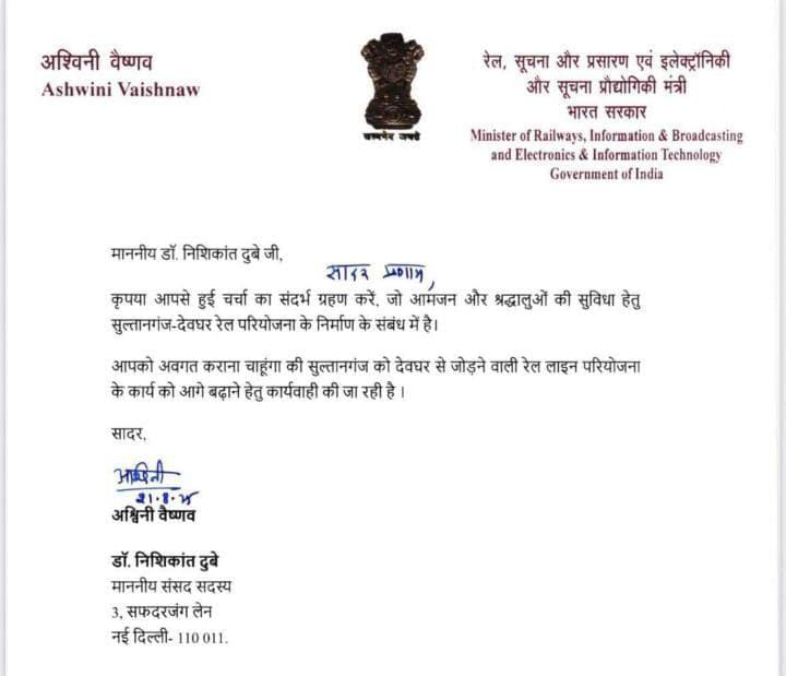 सुल्तानगंज से देवघर रेलवे लाईन की खबर पढ़ी होगी अब घोषणा करते देखे रेलवे मंत्री को सिर्फ बिहार जनमत पर।